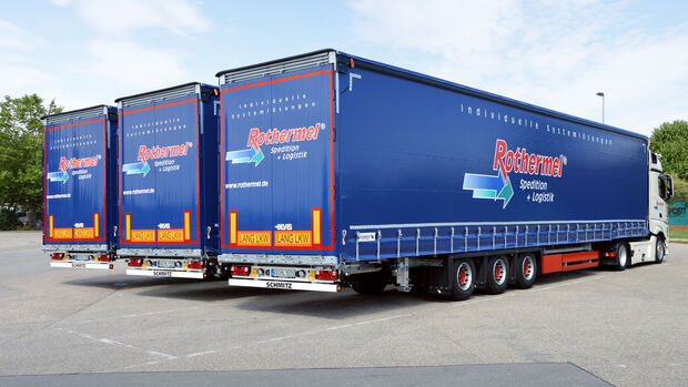 Dass es gemeinsam läuft, spüren auch die Mitarbeiter des Familienunternehmens: "Wir sind immer für unsere Mitarbeiter und Mitarbeiterinnen da", betont die Geschäftsführung bei Rothermel. Für die Zufriedenheit spricht die große Zahl langjähriger Mitarbeiter. Selbst in der Rente halten einige Fahrer ihrem Unternehmen die Treue. Das Spektrum der Spedition ist umfangreich: Verpackungen, Lebensmittel, Baustoffe, Reifenlogistik, Automotive und Fahrzeugtransporte. Dafür stehen über 100 Lkw bereit. "Wir haben feste Kunden, die wir regelmäßig anfahren, und daher oft gleich getaktete Routen", erklärt die Geschäfts-leitung. Der Vorteil: Be- und Entladestellen sind bekannt.