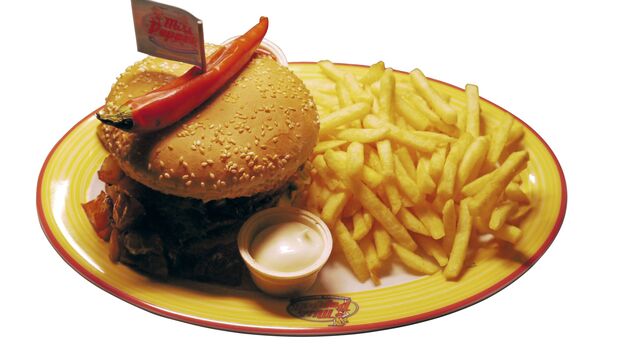 „Wer das erste Mal bei uns isst, wird einen unserer Burger auswählen. Also empfehle ich zunächst den Zwiebel-Pepperoni-Burger mit Paprika und scharfer Soße für 9,10 Euro. Man kann natürlich auch mehr als 100-Gramm-Beefburger bestellen: 180 Gramm für 10,80 Euro oder 360 Gramm für 15,60 Euro. Auf jeden Fall bereite ich alles mit großer Leidenschaft zu. Beim zweiten Besuch wäre die Rindfleischpfanne mit Bratkartoffeln für 15,90 Euro vielleicht eine Versuchung. Viele kommen auch wegen unserer Spareribs: 800 Gramm für 14,90 Euro.“