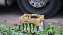 Seit dieser Zeit gibt es einen eigenen beschrankten Parkplatz mit Wachpersonal am Eingang und einer sanitären Einrichtung. Parken dürfen hier im Prinzip nur die Fahrer, die für Samskip arbeiten. Doch hinter dem knapp zwei Meter hohen Zaun herrscht dasselbe Problem. Die Fahrer der etwa 50 Sattelzugmaschinen, die dort Platz finden, sind das ganze Wochenende im oder am Lkw, bestätigt der Wachmann. Heißt: Sie kochen, sie schlagen die Zeit tot und sie trinken. Es ist die Freizeit der Fahrer, so sagen die Behörden, da können sie tun und lassen, was sie wollen. Also auch saufen.