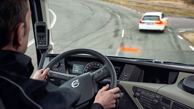 „Volvo Lkw bremsen aus gesetzlicher Lkw-Geschwindigkeit bis zum Stillstand ab, allerdings gibt es Wetterbedingungen und Fahrbahnbeschaffenheiten, die dieses Verhalten beeinflussen können.“