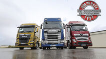 Der neue MAN TGX 18.510, der Mercedes-Benz Actros 1853 und der Scania 540 S stellen sich dem renommierten 1000 Punkte Test. Alle Ergebnisse zum großen Vergleichstest.