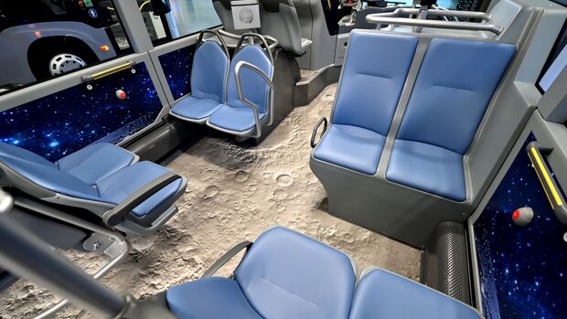 Die neuen Fahrzeuge für den Omnibusverkehr Spillmann aus Bietigheim – darunter vier Citaro hybrid und ein Citaro Gelenkbus – sind mit dem radarbasierten Abbiege-Assistent Sideguard Assist, WLAN und USB-Anschlüssen ausgestattet. Jedes Fahrzeug ist dazu nach einem speziellen Motto gestaltet. So läuft man im Citaro "Skipper" auf einem Boden aus Schiffsplanken und schaut dank der bedruckten Seitenwände auf das offene Meer oder einen Sandstrand. Für den "Astronomie"-Bus hat Omnibusverkehr Spillmann den Boden als Mondoberfläche bedruckt und über die Seitenwände einen Blick auf die Erde und ins Universum realisiert. Bodenständiger daher kommen die Busse "Bietigheim" mit Highlights der Region und Bruchsteinpflasterbelag als Boden, der "Vintage" mit 60er-Jahre-Design und unbehandelter Stahl-Haltestangen sowie der Citaro Gelenkzug "Mobility" mit einer Straßenansicht als Boden.