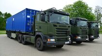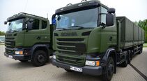 Das Fernmeldebataillon 610 in Prenzlau wird die meisten Fahrzeuge aus diesem Beschaffungsvorhaben erhalten. Daher fand dort im Mai die symbolische Übergabe der ersten Lkw statt. Beim Scania R 410 handelte es sich sogar um eine Premiere: Es sind die ersten hümS-Sattelzugmaschinen, die die BwFuhrparkService GmbH der Bundeswehr zur Verfügung stellt. Ihre Aufgabe beim Fernmeldebataillon 610 wird darin bestehen, spezielle Auflieger wie zum Beispiel einen mobilen Gefechtsstand zu ziehen. „Durch solche technische Konzepte im Flottenmanagement trennen wir die Funktionalität von der Mobilität und erhöhen damit die Effizienz für die Truppe“, erklärte Gösta Krieg, Vorsitzender der Geschäftsführung der BwFuhrparkService GmbH, bei der Übergabe.