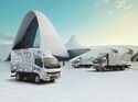 In Kitsuregawa bekommen wir exklusiv die Gelegenheit, die Kabine des Fuso eCanter zu entern. Dabei fällt sofort der neue Innenraum mit wertigeren Materialien und netten Designdetails in Hochvolt-Orange auf. Der Fahrer darf sich über Sitz-, Lenkrad- und Frontscheibenheizung freuen. Als Testfahrzeuge stehen drei Varianten bereit: Ein Kipper mit sechs Tonnen Gesamtgewicht, ein Kühlkoffer (7,5 Tonnen) sowie ein Flügelaufbau mit acht Tonnen (siehe links). Wir schnappen uns direkt den kleinen Kipper. Schon beim ersten Tritt aufs Gaspedal überrascht der eCanter. Es geht richtig flott voran mit 110 kW und satten 430 Nm, aber schließlich müssen hier mit einem Batteriemodul (39 kWh netto, 70 km) gerade einmal 2,5 Tonnen Leergewicht beschleunigt werden. Der Wendekreis von 10,8 Meter von Wand zu Wand mit kleinstem Radstand (2,5 Meter) würde auch gut in süditalienische Innenstädte passen. In der Maximalvariante (8,55 t zGG) bietet der eCanter gut vier Tonnen Nutzlast, 129 kW/430 Nm und mit größter Batterie (116 kWh netto) immerhin 200 Kilometer Reichweite.