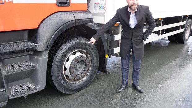 Diesen Ansatz verfolge Meyer Logistik auch bei der Implementierung des Reifenservice-Konzeptes Goodyear Total Mobility. „Wir haben begonnen den Reifen einer TCO-Betrachtung zu unterziehen“, erklärt Strehl den Wechsel des Reifenpartners hin zu Goodyear. „Hinzu kommt, dass wir das Thema Personal als eine für uns zentrale Strategie sehen. Deshalb waren wir auf der Suche nach einer Lösung, die unsere Mitarbeiter im operativen Geschäft entlastet“, ergänzt Christopher Steyer, Leiter Fuhrpark- und Projektmanagement bei Meyer Logistik. „Wir suchten eine Reifenlösung, die unseren Fahrern ein hohes Maß an Sicherheit bieten und ihn zugleich bestmöglich entlasten“, berichtet Steyer. Dabei sei nicht nur der Premiumreifen im Fokus gestanden. Bei Meyer Logistik hat man sich für Reifen der Serie Kmax entschieden. Die jüngste Generation der Reifenserie, der Kmax Gen-2, überzeugt mit einer hohen Laufleistung und eignet sich vor allem für Flotten im Regionalverkehr. Auch Dienstleistungen wie die Reifenfülldrucküberwachung (RDKS) sowie die digitale Transformation der dadurch gesammelten Daten konnten Meyer Logistik überzeugen.