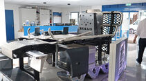 Doch auf der Zufahrt zum Firmengelände geraten wir plötzlich in einen Zeitstrudel, einen Riss der Zeit in Richtung rückwärts. Rechts hinter dem Gitterzaun schauen uns ein gutes Dutzend alter Volvo-Kameraden ins Gesicht: Volvo F 88, F 89, F 10, F 12, NH 12, F 16, FH 12, FH 16: ein Zeitstrahl in die schwedische Lkw-Geschichte – 50 Jahre auf 50 Metern.