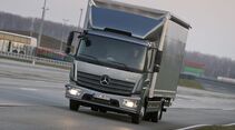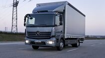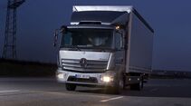 Die neue Frontschürze umfasst Frontscheinwerfer, in die nun das Blinklicht und die Tagfahrleuchten (LED optional) integriert sind. Was vorher zerklüftet anmutete, erscheint nun aus einem Guss. Der aerodynamische Feinschliff an der Front trägt sein Scherflein zum geringeren Verbrauch bei. Vor allem aber sind es die beiden neuen Motorenbaureihen OM 934 und 936, die laut Daimler für Bestwerte beim Verbrauch sorgen. Der Vierzylinder OM 934 deckt in vier Stufen Leistungen von 156 bis 231 PS ab. Mit 495 Kilo Trockengewicht soll er sich gerade für Nutzlast-sensible Einsätze empfehlen.
