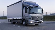 15 unterschiedliche Radstände von 3.020 bis 6.260 Millimetern schaffen Platz für unterschiedlichste Aufbauten, viele davon schon ab Werk. Auch eine Sattelzugmaschine wird im Atego-Programm auftauchen. Kurz: Da drückt nicht nur Mercedes’ Kleiner die Brust mit dem Stern raus, auch der Atego-Fahrer beliefert die Shops der Innenstadt mit stolz geschwellter Brust. Zumindest, wenn die ersten Testfahrten die Versprechungen von Daimler bestätigen.
