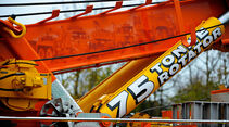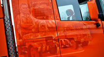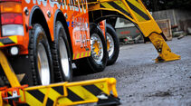 Zwei Antriebsachsen, zwei Lenkachsen, stählerne Blattfedern rundum und ein manuelles Schaltgetriebe sorgen in rustikaler und ehrlicher Weise dafür, dass der Truck immer genau das macht, was sein Fahrer möchte. Es handelt sich hinsichtlich der Achskonfiguration dann auch nicht um eine 8x4-, wie man augenscheinlich meinen könnte, sondern um eine 10x4-Konfiguration. Der Scania besitzt nämlich noch eine Liftachse vor den Antriebsrädern, die so weit nach oben gefahren werden kann, dass sie komplett im Bergeaufbau verschwindet. Diese Konstruktion gewährleistet bei Bedarf nicht nur vernünftige Achslasten, sie ist auch eine technische Meisterleistung. Da sie „außer Betrieb“ komplett unsichtbar ist, hat man ihr im Hause „Crouch Recovery“ mit englischem Humor einen würdigen Namen verpasst: „Stealth Axle“