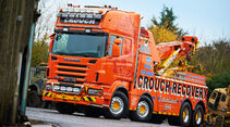 Wenn Adam Crouch aus Kibworth in Großbritannien den Zündschlüssel seines Scania umdreht, die 620 schwedischen Pferdchen zum Leben erweckt und der Truck wie ein Weihnachtsbaum aus einem noblen amerikanischen Vorort leuchtet, dann geht es auf Englands Straßen meistens um mehr als nur um einen Plattfuß. Denn wenn der R 620 Topline den Hof verlässt, dann haben normalerweise alle anderen Rettungsmaßnahmen bereits versagt.