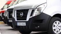 Der NV400 gibt sich indes vielseitiger als sein Vorgänger: Mit Gewichten von 2,8 Tonnen bis 4,5 t sowie Ladeflächen zwischen acht und 17 Quadratmeter steht der Transporter als Kastenwagen, neunsitziger Kombi und Pritschenwagen mit Einzel- und Doppelkabine in den Listen. Vier Längen bis knapp unter sieben Meter und drei Höhen bis 2.81 Meter samt Varianten wie Kipper- und Kühlaufbauten wird es geben.