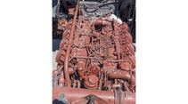 Zu seiner Blütezeit vor mehr als 30 Jahren war der große Iveco, der noch auf Fiat-Lkw-Erbgut aufbaute, mit seinen 420 PS und strammen 1.900 Nm Durchzugskraft ein üppig motorisierter Langstreckenstar. 1990 wurde die Leistung sogar auf 476 PS gesteigert. Von seiner maskulinen Ausstrahlung hat der Lkw-Senior bis heute nichts verloren. Iveco-Testingenieur Sebastian Liggefeld hat den Oldie vor sechs Jahren mit einer Million Kilometern auf dem Tacho vor dem Abtransport nach Afrika gerettet und mit viel Enthusiasmus wieder auf Vordermann gebracht. Wer wie er den Umgang mit dem unsynchronisierten Eaton-Twin-Splitter beherrscht, den belohnt der alte Laster-Kämpe mit einem auch heute noch beeindruckenden Durchzug an dem sprichwörtlich fetten Gummiband, der von dem potenten Wummern des V8 orchestral in Szene gesetzt wird. "Iveco-Freunde"-Clubmitglied Sebastian freut sich über den "geilen Sound" und das unverwässerte Fahrgefühl in dem äußerst rüstigen Senior. Truck und Fahrer sind gleich alt, die Liebe zur Technik verbindet.