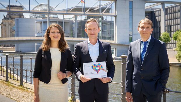 Stellten die KEP-Studie 2021 vor (von links): Elena Marcus-Engelhardt (Leiterin Kommunikation und Politik BIEK), Marten Bosselmann (Vorsitzender BIEK) und Dr. Klaus Esser (Geschäftsführer KE-Consult).