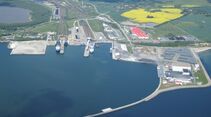 Zudem wurde die Wassertiefe auf 10,5 Meter erhöht und ein 410 Meter langer Anleger errichtet. So können die 560 Einzelteile der 80 Windkraftanlagen für Baltic 2 angeliefert, vormontiert und gelagert werden, bevor diese mit einer schwimmenden Montageplattform ins Baufeld geschleppt und dort errichtet werden.