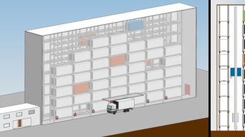 Mehr Platz für Ladeeinheiten - Hochregal für Kombiterminals.