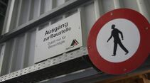 Das Kontrastprogramm gibt es südlich der gelben Türe: Dort herrscht emsiger Betrieb. Männer in Overalls bringen auf riesigen Gerüsten Beton an die noch unverkleideten Gesteinswände. Tunnelzüge mit Beton tuckern vorbei, und an der Seite spritzt Wasser in einem Schlauch auf den schlammigen Boden. Hier ist noch alles in der Entstehung.