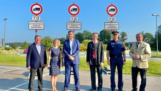 Nicht nur weisen jetzt Schilder entlang der Autobahnen A8 und A93 darauf hin, dass für Lkw ein Ausweichen auf die Landstraßen bei Blockabfertigung nicht mehr erlaubt ist. Laut StMB sperren die Straßenverkehrsbehörden an diesen Tagen auch die relevanten Straßen in den Landkreisen Miesbach, Rosenheim, Traunstein und Berchtesgadener Land teilweise bereits ab den Autobahnanschlussstellen für den grenzüberschreitenden Lkw-Verkehr. Betroffen ist das nachgeordnete Straßennetz ab den Autobahnausfahrten.