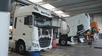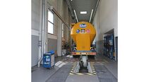 Roll ist außerdem Partner des Reifendienstes Vergölst und Stützpunkt für die Nutzfahrzeug-Vermietung Pema. Das Unternehmen repariert und wartet darüber hinaus auch leichte Nutzfahrzeuge. „Ab 3,5 Tonnen Gesamtgewicht machen wir alles“, sagt Geschäftsführer Ronny Pflug, Schwiegersohn des Inhabers.Entsprechend umfangreich ist die Ausstattung des Betriebs. Insgesamt sieben Servicebahnen stehen der Kundschaft zur Verfügung. Zwei davon verfügen über eine 30 Meter lange Servicegrube der Firma Balzer, eine weitere über eine Vierstempel-Hebeanlage von Blitz für bis zu 60 Tonnen. Hinzu kommen zwei Kranbahnen mit je fünf Tonnen Tragkraft. Als Dekra-Stützpunkt bietet Roll Truck-Service auch eine Prüfbahn, die von Maha entsprechend ausgerüstet wurde.Die Mannschaft arbeitet im Zwei-schichtbetrieb. Die Öffnungszeiten von 6 bis 22 Uhr montags bis donnerstags beziehungsweise von 6 bis 20.30 Uhr freitags sowie von 7.30 bis 14 Uhr am Samstag entsprechen den Anforderungen der Transportbranche ebenso wie die Bereitstellung von Ersatz-Sattelzugmaschinen der Marken Renault und Volvo.